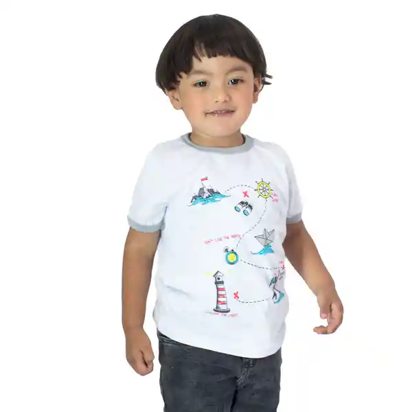 Camiseta Para Bebito. Manga Corta Con Sesgos en Contraste Cuello Redondo en Rib Estampado Frontal: Mapa Del Tesoro Algodón 100% Ref 01681