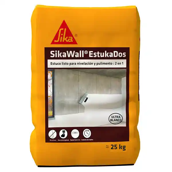 Es un estuco en polvo blanco con agregados y aditivos especiales, listo para usar, de excelente manejabilidad para aplicar sobre muros y techos. Puede reemplazar el uso de pañetes, frisos, revoques o repellos.