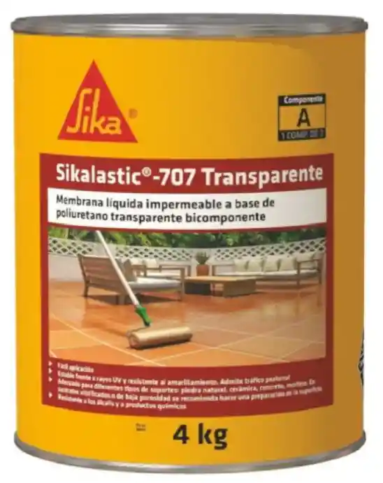 Uso Impermeabilización, revestimiento y protección de balcones y terrazas. Permite impermeabilizar terrazas y balcones sin perder el acabado. Ventajas Elástico. Fácil aplicación. Estable contra rayos UV y resistente al amarillamiento. Una vez aplicado forma una membrana uniforme, continua y transparente. Adecuado para diferentes tipos de soporte: piedra natural, gres, hormigón y mortero. En sustratos vitrificados o de baja porosidad se recomienda realizar una preparación en la soporte. Consulte el Departamento Técnico de Sika. Soporta tráfico peatonal. Se limpia fácilmente. Resistente a álcalis y productos químicos