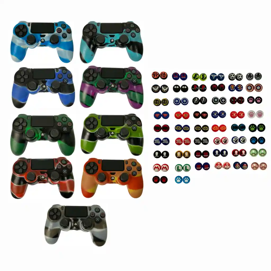 Silicona Diseño camuflad apara Ps4 + Dos Grips de diseños *Incluye: *2 Grips *1 Silicona de diseño Tenemos varios diseños disponibles a escoger Una vez generes la compra por la aplicación se habilita un link de mensajería interna con nuestra tienda, por este medio nos puedes especificar el diseño que deseas para asegurarnos que el envio sea el diseño correcto