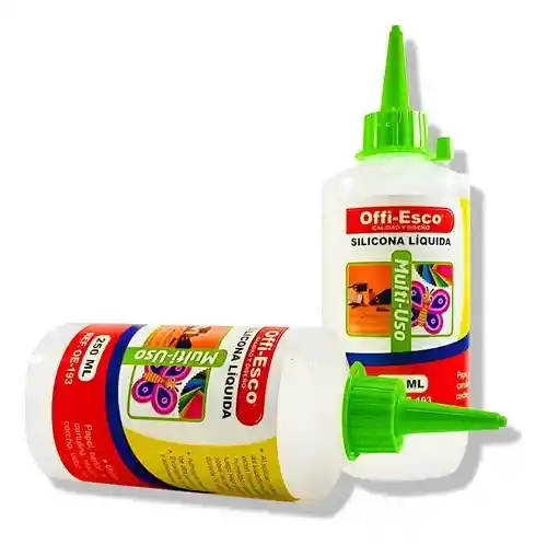 SILICONA LÍQUIDA OFFIESCO 250 ML. ADHESIVO TRANSPARENTE DE SECADO RÁPIDO, IDEAL PARA MANUALIDADES, TRABAJOS ESCOLARES Y USO GENERAL.