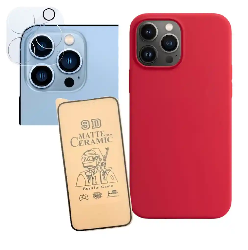 Silicone Case + Protector De Cámara + Cerámico Silicone Case Protección contra impacto, elegante y lujoso. Diseño de seguridad que mejora el estilo del dispositivo. Bordes resistentes que brindan mejor resistencia contra impactos accidentales. Esquina curva para mejorar el agarre. No se pega en los bolsillos. Cada orificio viene muy bien detallado y ajustado a los botones o cámaras del celular. Los espacios de los botones se ajustan perfectamente al móvil sin afectar su manipulación.