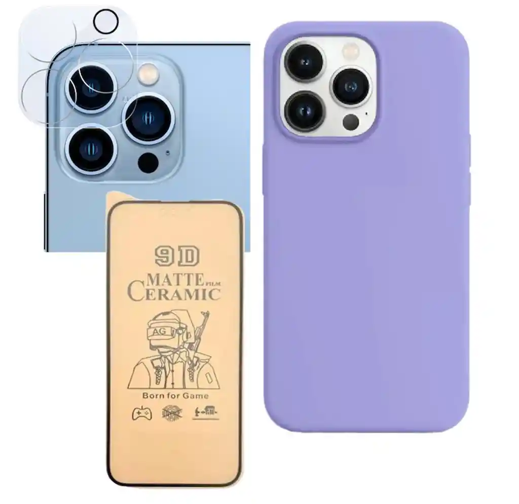 Silicone Case + Protector De Cámara + Cerámico Silicone Case Protección contra impacto, elegante y lujoso. Diseño de seguridad que mejora el estilo del dispositivo. Bordes resistentes que brindan mejor resistencia contra impactos accidentales. Esquina curva para mejorar el agarre. No se pega en los bolsillos. Cada orificio viene muy bien detallado y ajustado a los botones o cámaras del celular. Los espacios de los botones se ajustan perfectamente al móvil sin afectar su manipulación.