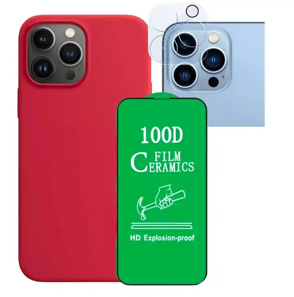 Silicone Case + Protector De Cámara + Cerámico Silicone Case Protección contra impacto, elegante y lujoso. Diseño de seguridad que mejora el estilo del dispositivo. Bordes resistentes que brindan mejor resistencia contra impactos accidentales. Esquina curva para mejorar el agarre. No se pega en los bolsillos. Cada orificio viene muy bien detallado y ajustado a los botones o cámaras del celular. Los espacios de los botones se ajustan perfectamente al móvil sin afectar su manipulación.