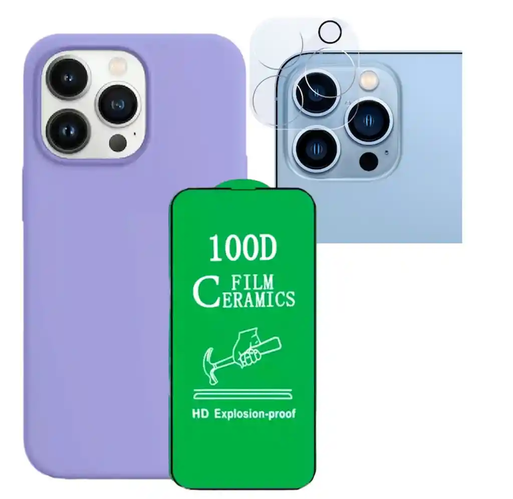 Silicone Case + Protector De Cámara + Cerámico Silicone Case Protección contra impacto, elegante y lujoso. Diseño de seguridad que mejora el estilo del dispositivo. Bordes resistentes que brindan mejor resistencia contra impactos accidentales. Esquina curva para mejorar el agarre. No se pega en los bolsillos. Cada orificio viene muy bien detallado y ajustado a los botones o cámaras del celular. Los espacios de los botones se ajustan perfectamente al móvil sin afectar su manipulación.