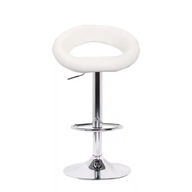 Silla bar Darn color blanco tapizado en pu.. Apoya pies en acero acabado cromado con mecanismo regulador de altura.. Altura mínima: 79 Cm.. Altura máxima: 99 Cm.. Ancho: 52 Cm.. Largo: 48 Cm.