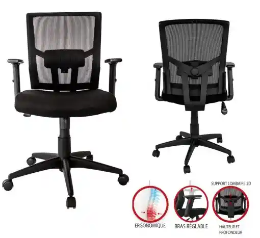 Silla de Oficina Tunja Gerente – Mecanismo Basculante – Graduación de altura en asiento – Perilla de Tención para ajuste en recueste de silla cuando no esta en posición fija – Brazos graduables en altura – Apoyo lumbar graduable en altura y profundidad 2D – Espalda en malla negra, asiento en paño negro Garantía TRES AÑOS sobre defectos de fabrica. (envió incluido a ciudades principales)