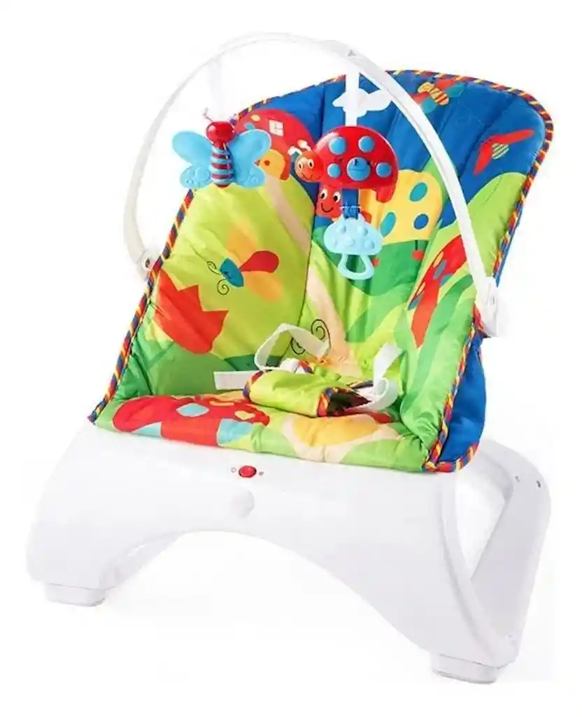 Edad recomendada: + 2 meses Dimensiones aproximadas del producto ensamblado: 62cm x 50cm x 61cm Dimensiones aproximadas del paquete (alto x ancho x largo): 44 cm x 14 cm x 55 cm Peso aproximado del paquete: 3 kg Peso Máximo Soportado: 11.3kg Composición/Material: Plástico y Tejido Sonido Vibración Color Verde Estampado: Surtido Batería/tipo de batería: 1 Batería B/L20 (no incluida) Contenido del paquete: 1 almohadilla 4 soportes 1 lazo con 2 juguetes extraíbles