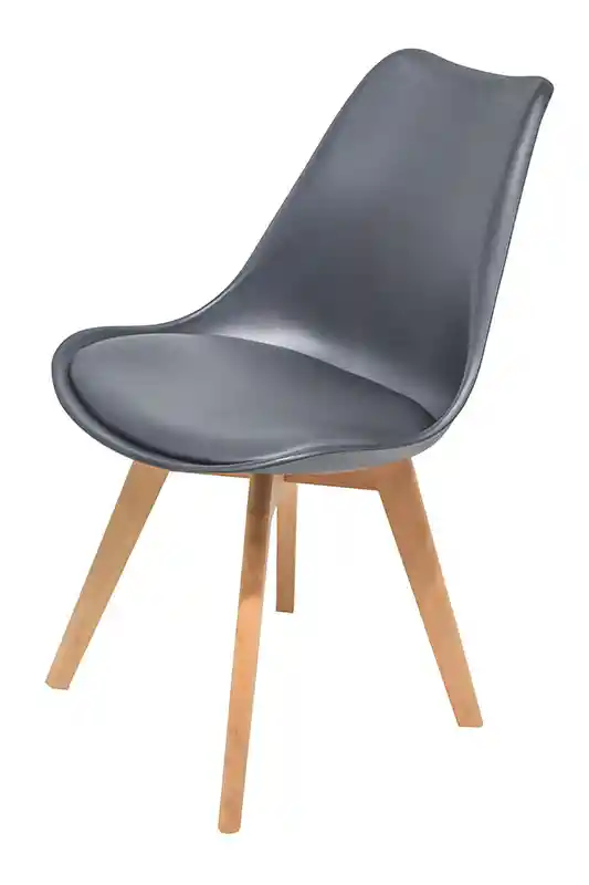 Silla eames para comedor con asiento y espaldar monoconcha inyectados en polipropileno - Patas en Madera - Asiento Tapizado en CueroSintetico, la silla se envia en caja.