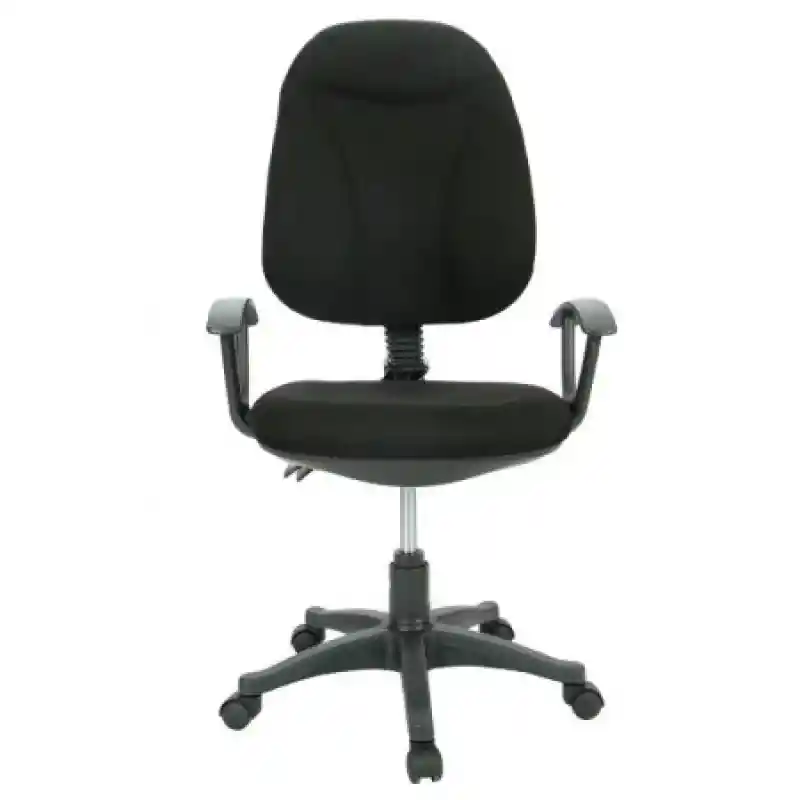 Brazos. Sillín. Espaldar acolchado. Ergonómica. Altura ajustable. Palanca para inclinar el espaldar, hacia atrás o hacia adelante. 5 Ruedas. largo 63 x ancho 53 x altura minima 96 y altura máxima 108 cm.
