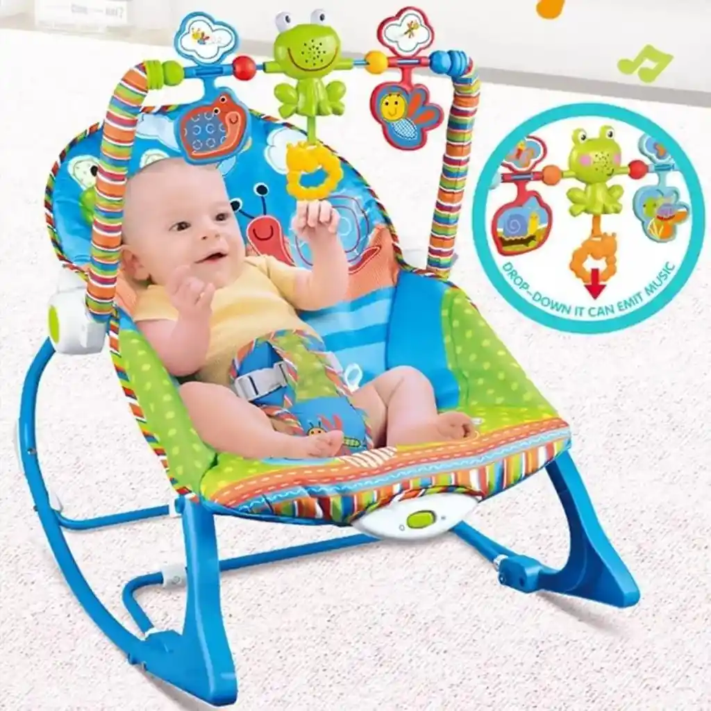 Silla Mecedora Musical Barra Juguetes Desmontable 2 Posiciones Infantil Musical Vibracion Diversion DESCRIPCION Diseño de Doble Posicion: Posicion reclinada para uso de Bebés y Posicion de Mecedora para Niños PequeñosControl de Vibracion de encendido sencillo con un solo botton.Seguridad: Soporte de Acero con base Antiderrapante y Cinturon de seguridad con ArnesBarra de Juguetes Desmontable con juguetes musicalesCapacidad maxima de 40 Libras, Uso de 0 a 60 MesesMedidas: 69cm Largo X 69cm Ancho X 59cm Alto