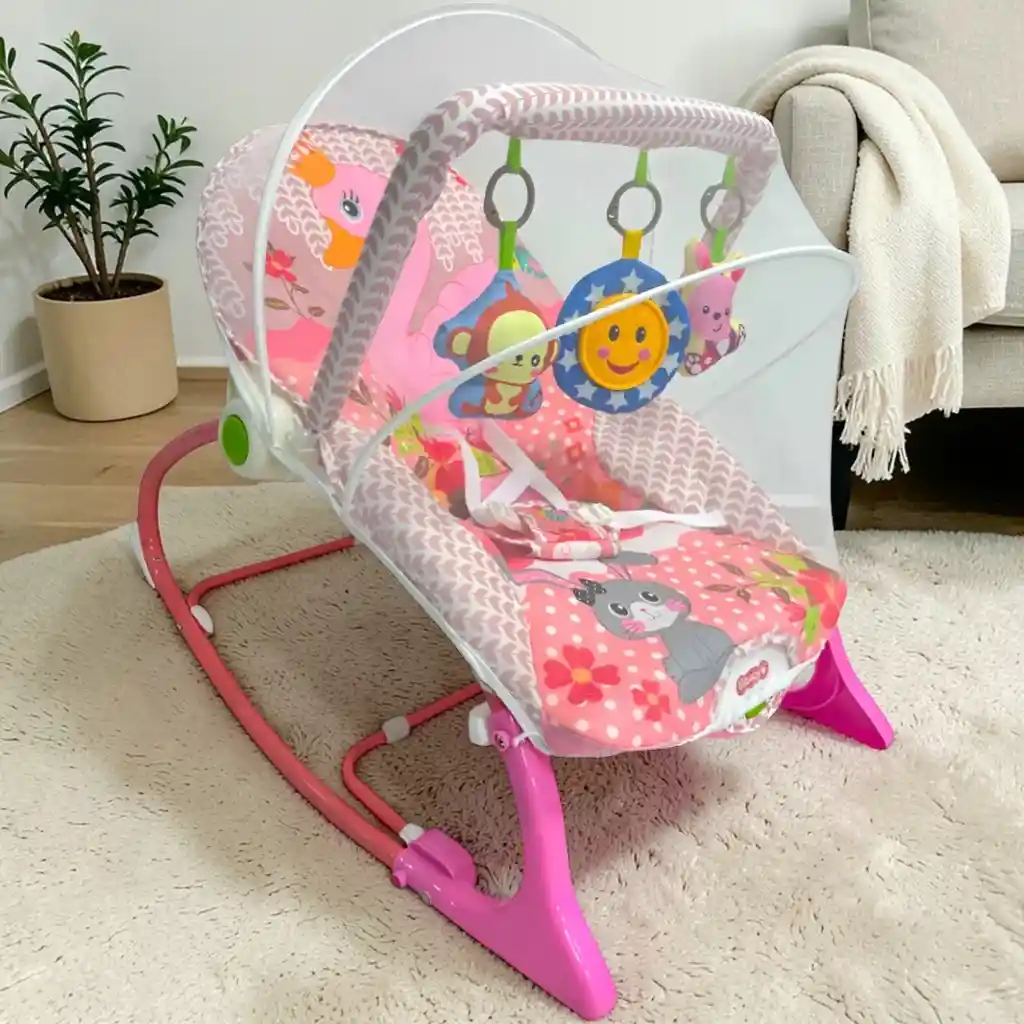 Tenemos esta hermosa y practica silla! ¡Esta mecedora es fantástica! Con usos múltiples como jugar, relajar, descansar y simplemente pasarla bien. Empieza como silla o mecedora para el bebé, con armazón de bajo perfil, ideal para recién nacidos. Después, conforme tu pequeño crece, puedes convertirla fácilmente en un asiento con barra de juguetes removible. Mientras continúa creciendo tu niño y ya no es tan pequeño, se convierte en mecedora para niños de hasta 18 kg (40 lb). Plegable, portátil y mecedora… ¿qué más puedes pedir?