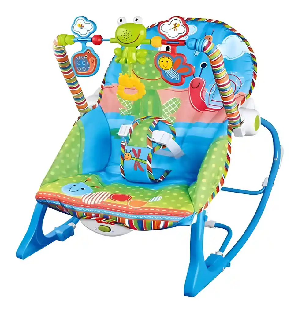 Esta versátil silla mecedora con sistema de vibración y musical es el asiento perfecto para acompañar el crecimiento del bebé. Cuenta con un asiento reclinable y un pie de apoyo plegable, ideal para alimentar cómodamente al bebé. En posición vertical, permite que el movimiento del pequeño genere un suave balanceo, acompañado de música y juguetes estimulantes para su entretenimiento. Al momento de la siesta, se puede retirar la barra de juguetes y activar las vibraciones relajantes para un descanso tranquilo. A medida que el bebé crece, se transforma en una mecedora para niños pequeños, adaptándose a su desarrollo y proporcionando comodidad y diversión desde el nacimiento hasta que pueda sentarse y moverse sin ayuda. /// El juguete incluye baterías /// Ficha Técnica: Dimensiones de la silla: 65 cm x 49 cm x 46 cm Dimensiones del empaque: 53 cm x 38 cm x 8 cm Material: Plástico ABS Edad recomendada: + 0 Meses Certificado de conformidad: SL-CS-210044 Referencia: JB064 ** _Para defectos de fábrica o retractos: \_Por favor revise el producto apenas lo reciba y antes de usarlo. No aplican ley de retracto o defectos de fábrica luego de usar el producto. Se manejan máximo 5 días para reportar defectos de fábrica (por ejemplo, producto funciona mal, piezas faltantes, rotas, etc). Para hacer efectiva la devolución el producto debe devolverse con el empaque original, el cual debe estar en buen estado, incluir todos los documentos y las partes completas y sin daños.