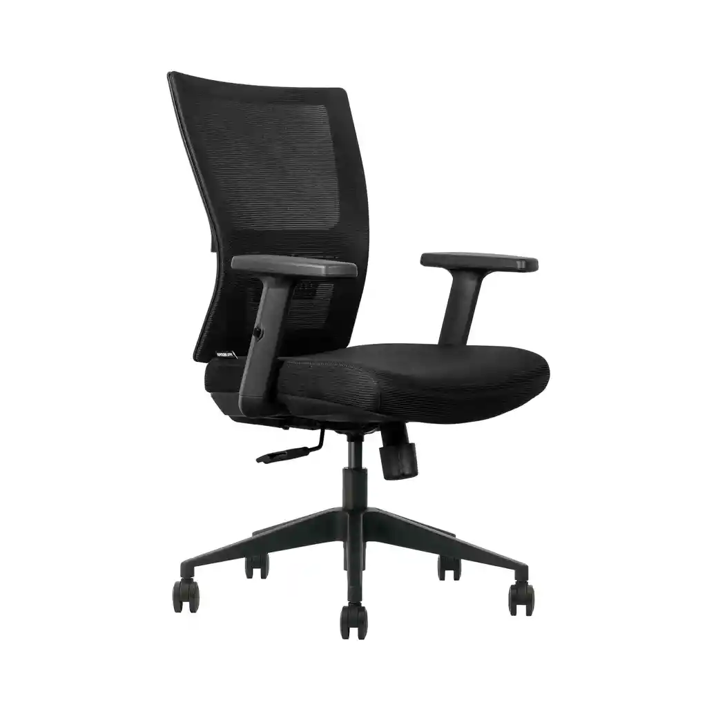 Su diseño versátil, cómodo y ergonómico benefician al usuario ya que es ideal para uso de largas jornadas de trabajo. Espaldar en malla negra con soporte en el espaldar, graduable en dos posiciones. Asiento en espuma moldeada tapizada en tela negra que brinda un mejor soporte pelvico Mecanimo que permite la elevación y ajuste del asiento e inclinación del espaldar Brazos graduables y confortable contacto con el antebrazo Base en nylon negro Rodachinas para piso duro Garantía: 2 años Recibe tu silla armada. No incluye valor de envío Selecciona el color del tapizado que prefieras