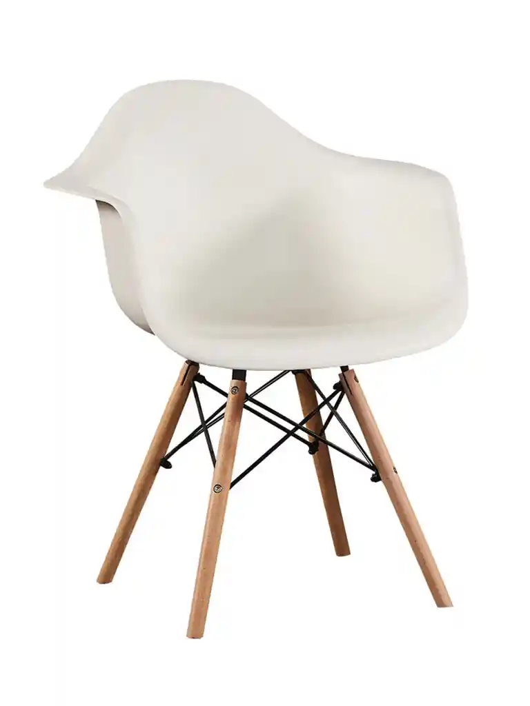 Silla en plástico con patas en madera.
