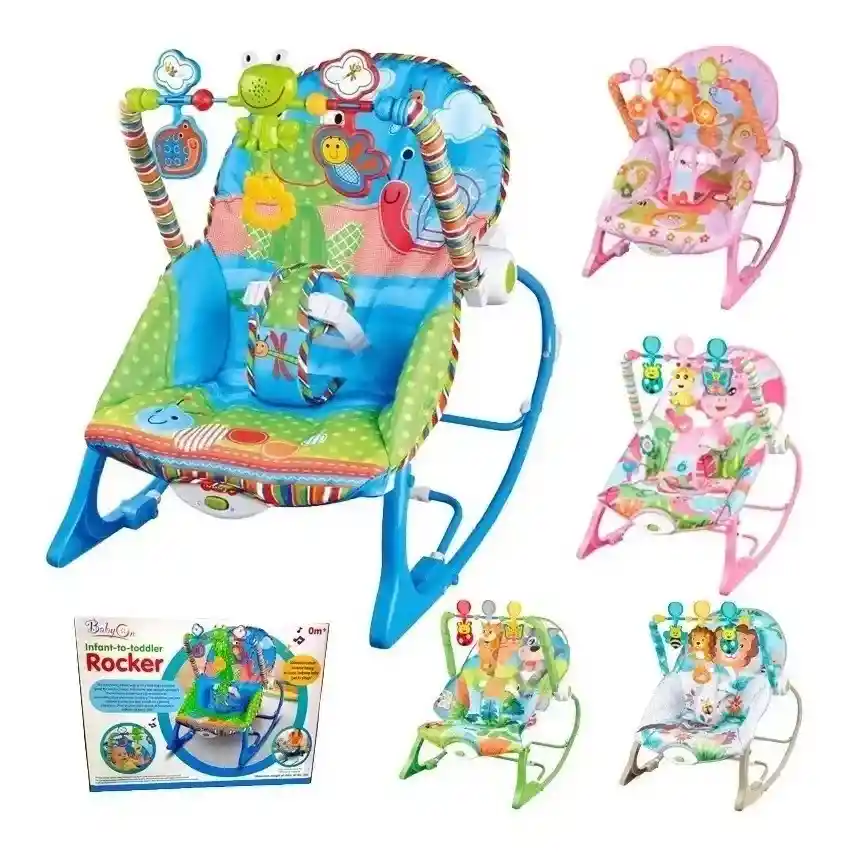 Los diseños pueden variar un poco de acuerdo a la disponibilidad, por ello puedes escoger entre silla para niña o para niño, y el color que se te enviará será el que elijas, compra con tranquilidad, todos los diseños son hermosos. Fomenta el desarrollo de las habilidades motoras: a medida que el bebé alcanza y agarra los juguetes, se mejora la coordinación ojo-mano y la motricidad fina. Estimula los sentidos: las actividades coloridas ofrecen estimulación visual. Estimula el sentido del tacto con variedad de texturas. Barra de juguetes extraíble Ángulo de asiento ajustable Almohadilla lavable a máquina Se convierte fácilmente en una mecedora para niños pequeños Adecuado para recién nacidos y hasta niños de 18 kg. Tamaño 65 x 46 x 49 cm