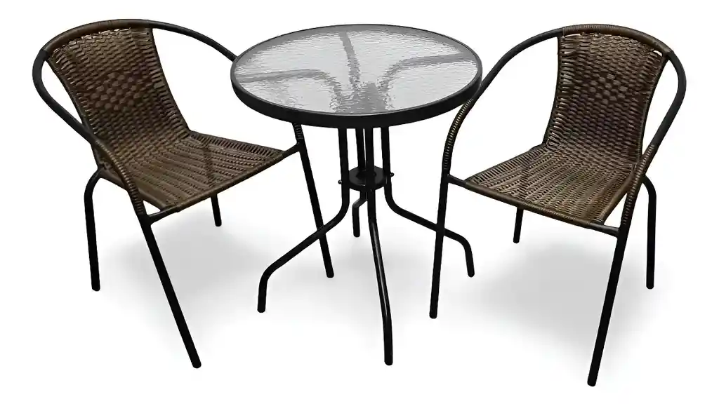 Lo que tienes que saber de este producto Altura total: 76 cm. Unidades por pack: 3. Cantidad de cuerpos: 1. Con apoyabrazos: Sí. Apilable. Estructura de metal. Patas fabricadas en metal. Asiento de ratán sintético. Soporta hasta 120kg. Just Home Collection - Mesa Set Jardín Balcón + 2 Sillas Rattan Exterior Color Chocolate Transforma tu espacio exterior con el Set de Mesa y 2 Sillas Just Home Collection. Este elegante conjunto, diseñado especialmente para jardín o balcón, ofrece comodidad y estilo con su estructura de rattan en un sofisticado color chocolate. Ideal para disfrutar de momentos al aire libre, ya sea para compartir una comida o relajarte bajo el sol. La mesa de diseño compacto es perfecta para pequeños espacios, mientras que las sillas proporcionan un confort superior gracias a su estructura ergonómica. El rattan, un material resistente y duradero, está especialmente diseñado para soportar las inclemencias del tiempo, haciendo de este set una excelente opción para exteriores. Este set es perfecto para quienes buscan crear un ambiente acogedor en su terraza, balcón o jardín, combinando funcionalidad y estética en un solo conjunto. ¡Haz de tu espacio exterior un lugar más elegante y cómodo con el COMBO K42!