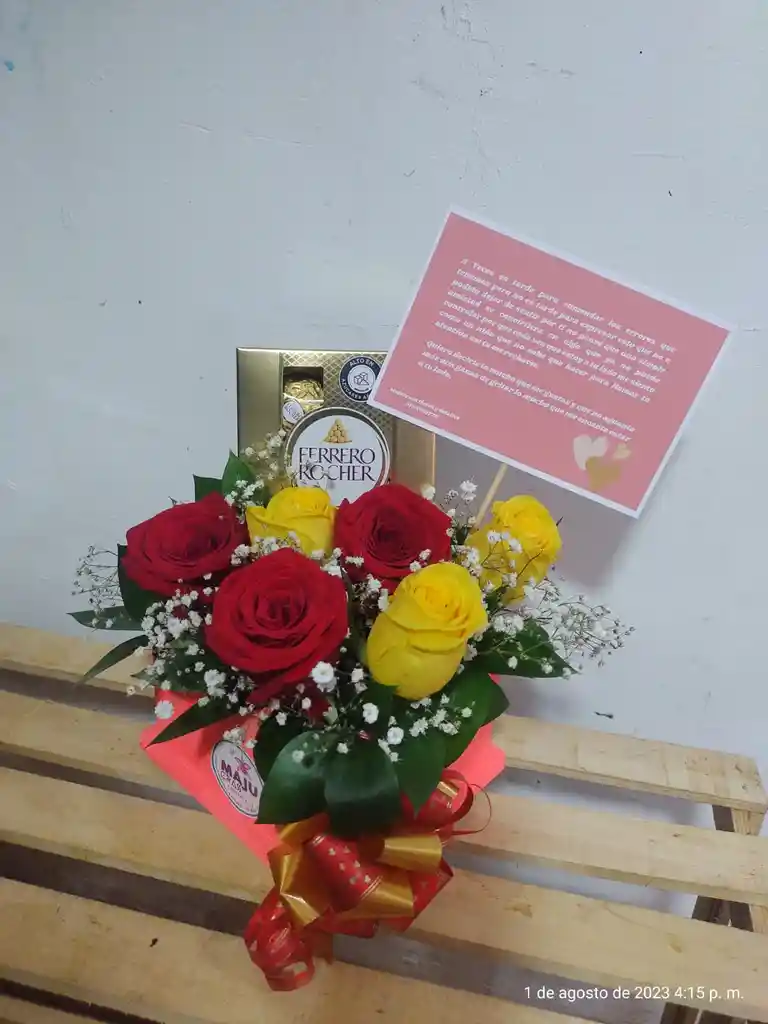 arreglo floral con rosas color dependiendo disponibilidad de la tienda deliciosos chocolates ferrero