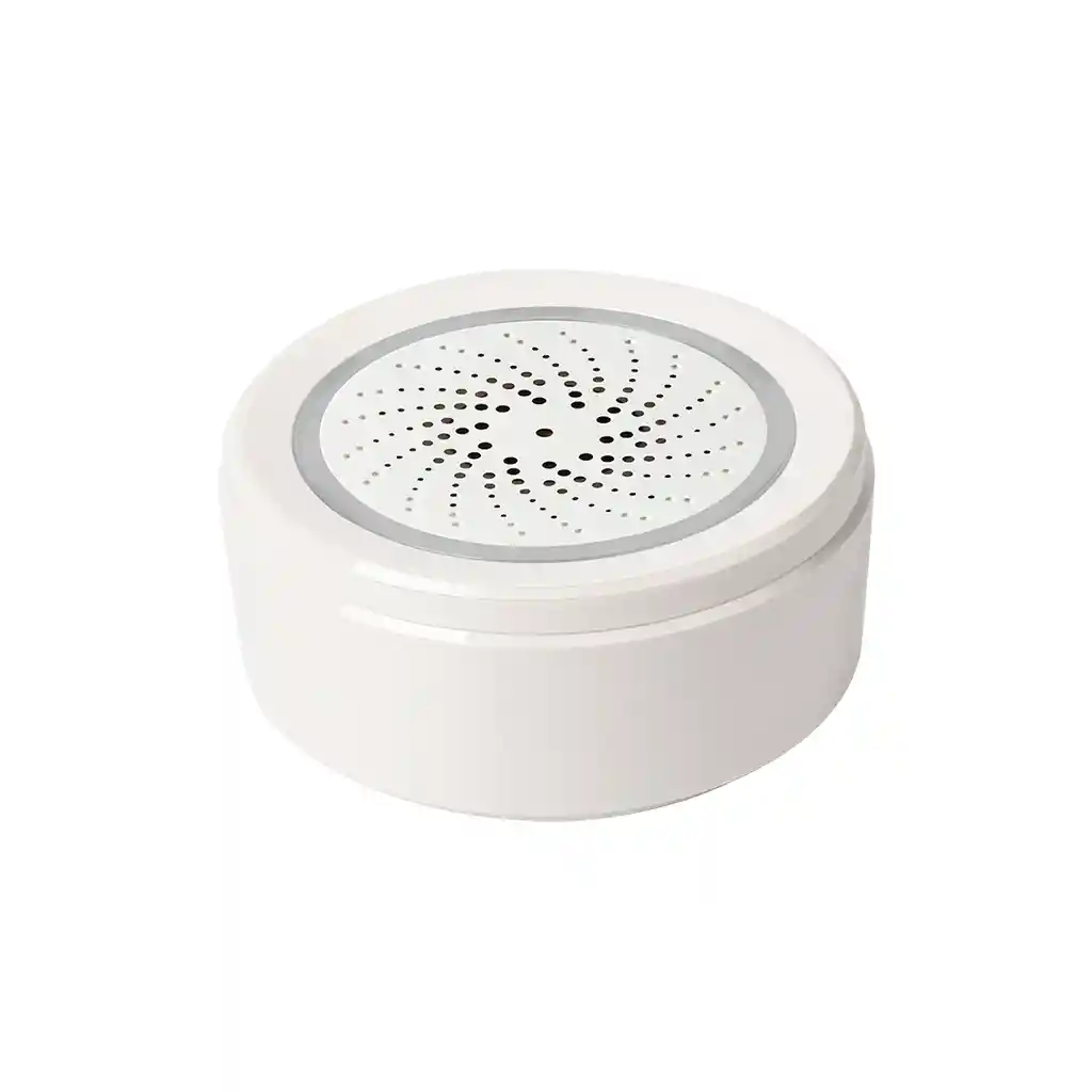 Además de sonar cuando un sensor es activado, en la aplicación estableces el rango de alarma de temperatura y humedad, si detecta cambios o excede el intervalo de seguridad, genera alarmas automáticamente incluso en ausencia de una red. La función avanzada de memoria de apagado, en el caso de apagado repentino, la sirena guardará los parámetros que se establecieron en la aplicación antes, cuando se encienda, la sirena reanudará el estado de funcionamiento normal a tiempo.NO REQUIERE HUB: Se conecta directo al sistema Wi-Fi de tu casa u oficina.COMPATIBILIDAD: Funciona con tecnología Wi-Fi de 2.4 GHz.Requiere de adaptador de 5V1A Micro USB (no incluido)Memoria para los rangos de Temperatura y HumedadEspecificaciones TécnicasMarca: Geek TrendyModelo: GK-AB02WTHHace sonidos y sus LEDs titilan cuando se activa la alarmaSensor de temperatura y humedad incorporado (Ventaja: incluso si no hay Internet en el hogar o el servidor tiene problemas, una vez que haya configurado la alarma en la App, los sensores aún funcionan en los rangos preestablecidos)Fuente de alimentación de la batería: CR123A * 2pcsFuente de alimentación externa: Mini USB, 5V 1A (no incluida)Tipo inalámbrico: 2.4GHzProtocolo: IEEE 802.11b / g / nIntensidad de sonido: 90dB,Temperatura de funcionamiento: 0-40 ° C, 8. Tamaño (D * W * H): 68 * 68 * 30 mm 9. Distancia máx. wifi: 45 m