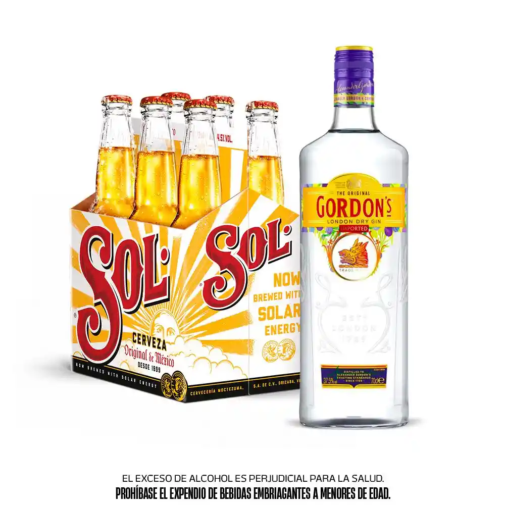 Combo Six Pack Cerveza Sol Lata 269 Ml + Gordon´S London Dry Gin 700 Ml. , Prohíbese El Expendio De Bebidas Embriagantes A Menores De Edad.