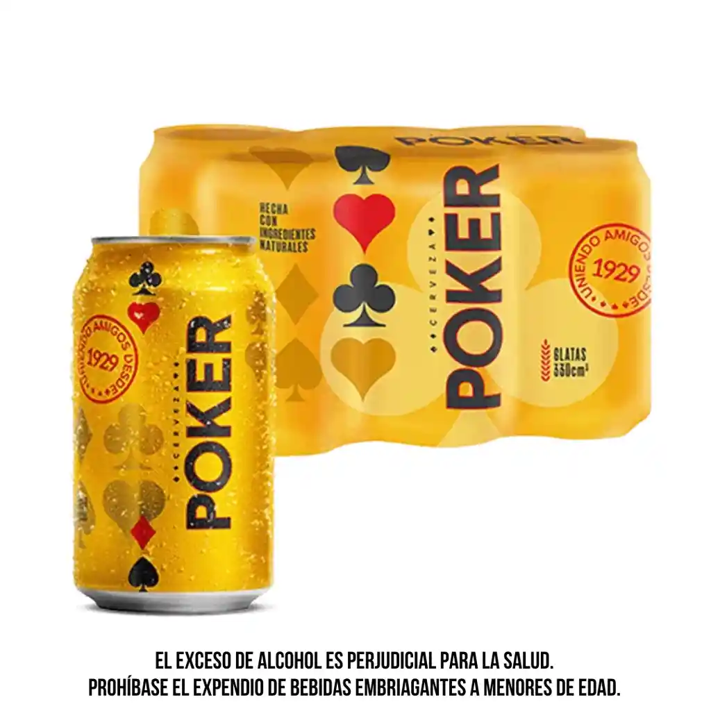 Disfruta el sabor tradicional de Poker, una de las cervezas más representativas de Colombia, reconocida por su sabor suave, refrescante y fácil de tomar. Elaborada con ingredientes seleccionados, ofrece un equilibrio perfecto ideal para cualquier ocasión. Este six pack de latas de 330 ml es perfecto para compartir en reuniones, celebraciones o simplemente para disfrutar una cerveza bien fría.