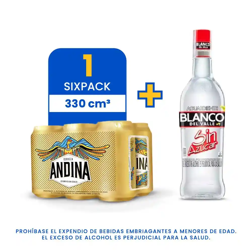 Combo Sixpack Cerveza Andina Lata 330Ml + Blanco Del Valle Sin Azucar 750 Ml. , Prohíbese El Expendio De Bebidas Embriagantes A Menores De Edad.