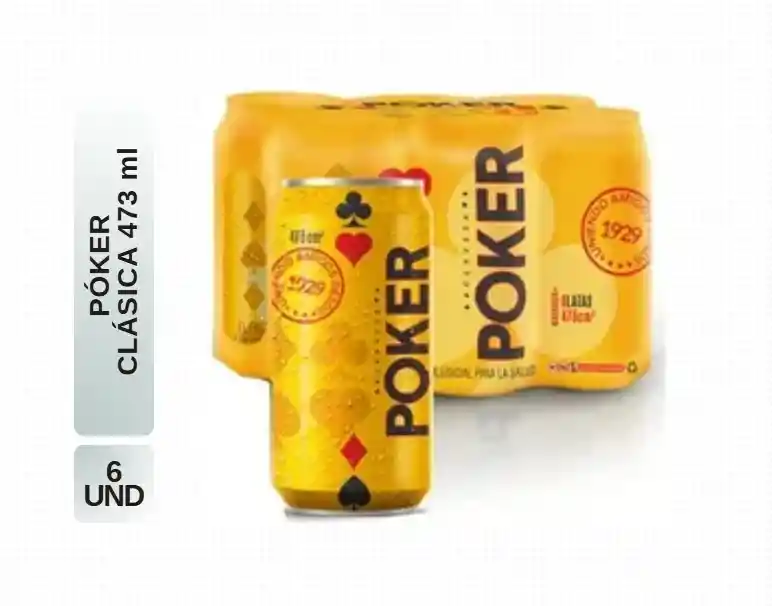 Sixpack Cerveza Poker Lager Clasica Laton 473mL