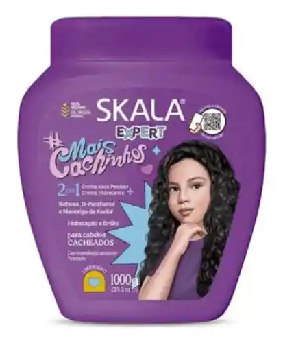 Skala Mais Cachinhos, diseñado para cabello rizado o crespo, especialmente para niños. Es un producto vegano que hidrata, nutre y define los rizos, aportando brillo y suavidad. Aquí están sus principales características y usos: Ingredientes: Contiene aloe vera, D-pantenol y manteca de karité, que proporcionan hidratación y nutrición profunda. Libre de: No contiene sulfatos, parabenos, siliconas, petrolato ni aceite mineral. Uso: Se puede usar como crema para peinar, acondicionador o tratamiento hidratante. Para tratamiento, se aplica de medios a puntas, se deja actuar de 15 a 30 minutos y se enjuaga. Beneficios: Reduce el frizz, aporta brillo, suavidad y ayuda a definir los rizos. Ideal para: Cabellos rizados, crespos, ondulados y en transición.