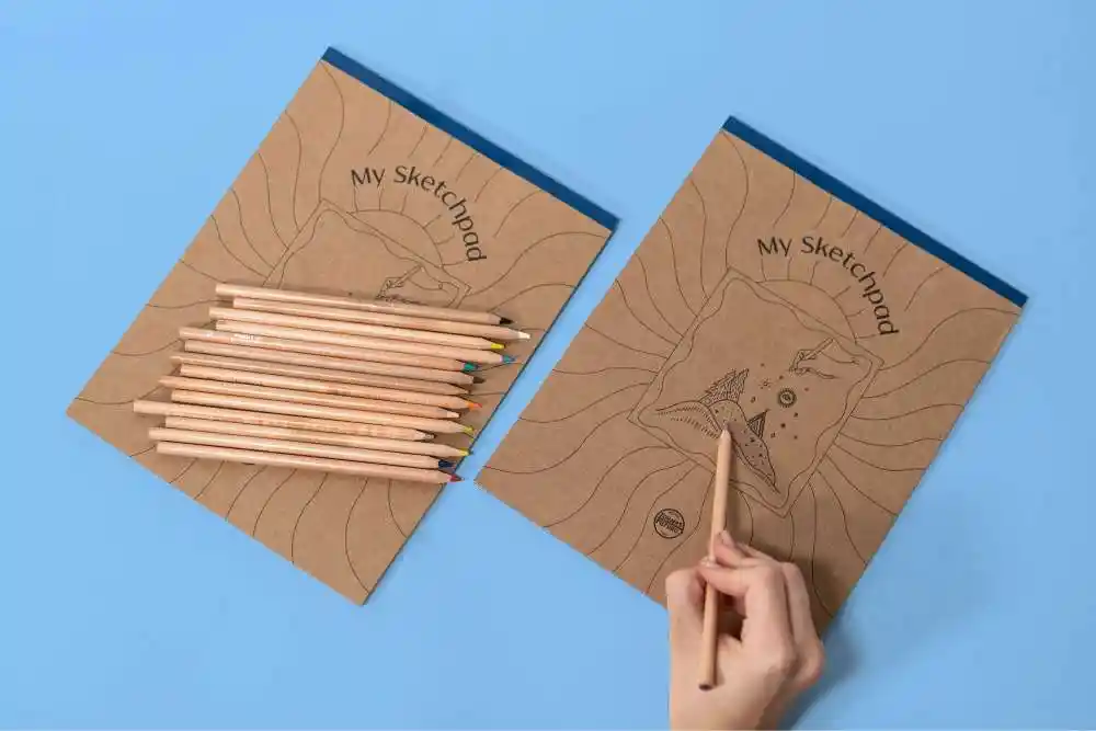 Es un block perfecto para hacer diferentes tipos de bocetos por los distintos tipos de papel que posee. Contiene: -15 hojas de papel ecológico con impresión de punticos y un gramaje de 75. -10 hojas de papel kraft con un gramaje de 130 -15 hojas de papel iris negro con un gramaje de 80