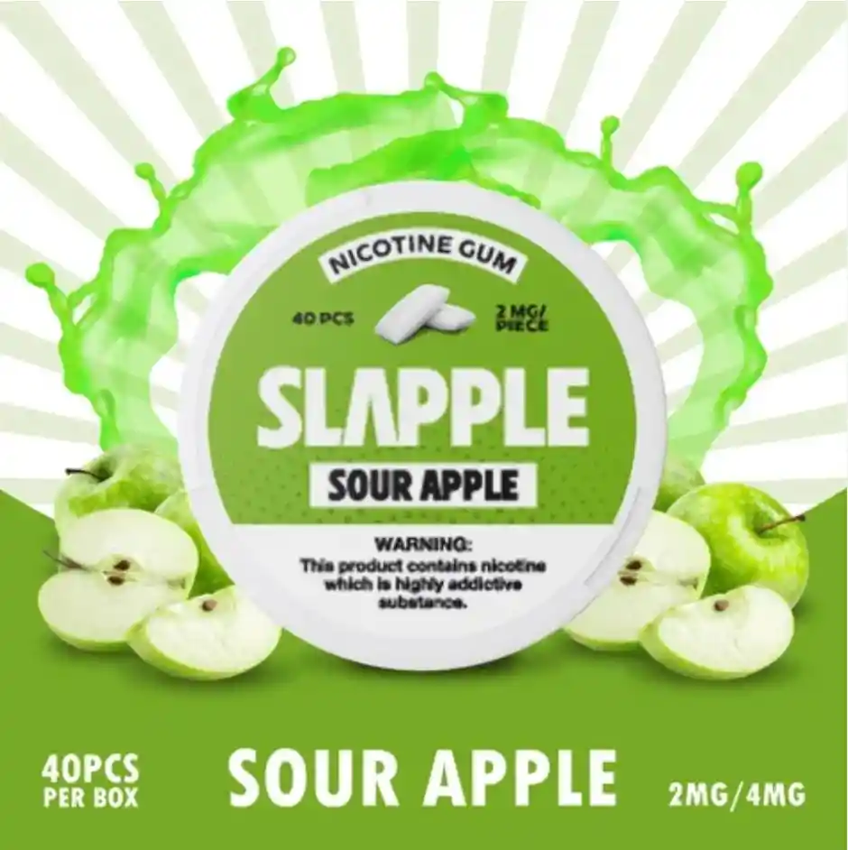 2Mg por cada chicle, 40 Unidades. SLAPPLE es el nuevo chicle de nicotina con sabores intensos a frutas, diseñado para quienes buscan una alternativa refrescante, práctica y sin humo. Perfecto para acompañarte en cualquier momento del día, SLAPPLE combina una dosis precisa de nicotina con un sabor delicioso que no se desvanece.