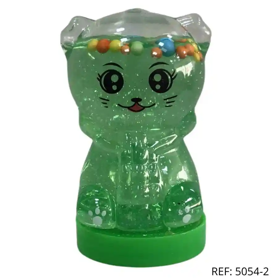 Slime verde en frasco de gatito. Perfecto para jugar, decorar o liberar estrés