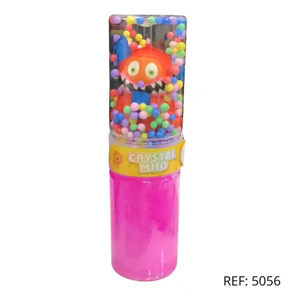 Slime rosa con bolitas de colores y diseño divertido, ideal para amasar y jugar con texturas.