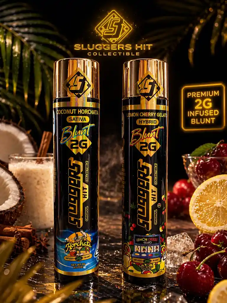 Producto premium Sluggers Hit Blunt 2G, una presentación infusionada de alta calidad diseñada para una experiencia más intensa. Viene en dos variedades: Coconut Horchata (Sativa), ideal para energía y enfoque, y Lemon Cherry Gelato (Hybrid), que ofrece un equilibrio entre relajación y euforia. Su formato de 2 gramos lo hace práctico, potente y listo para disfrutar con estilo.