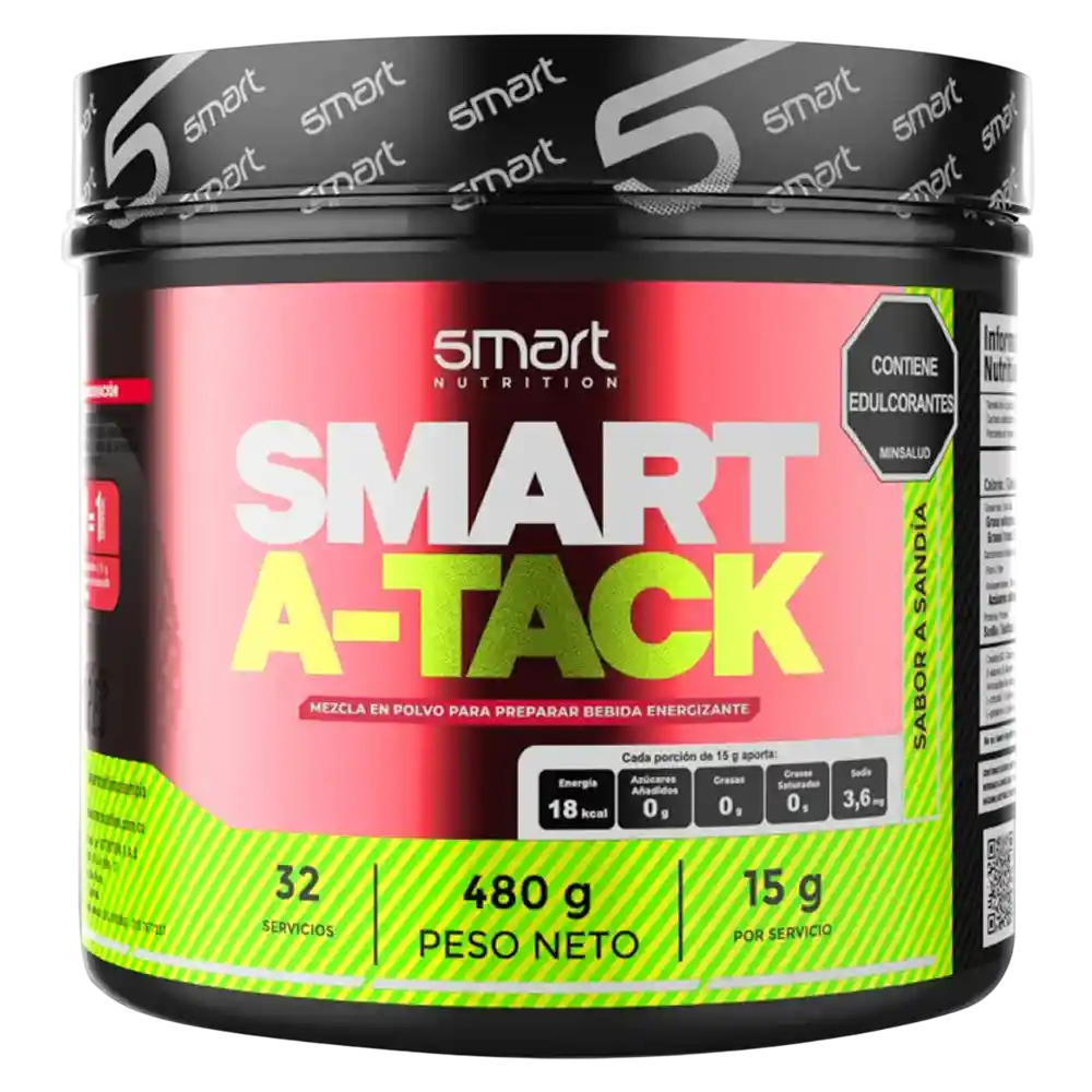 CREATINA SMRT ATTACK DE SMART NUTRITION 32 SERVICIOS Descripción del producto Es una mezcla en polvo elaborada a partir de fuentes de la más alta calidad y entre las que sobresale la Creatina HCL, pues gracias a su alto nivel de solubilidad y absorción no va a comprometer el PH de tu tracto gastrointestinal, lo que se traduce en que no vas a experimentar las molestias de otros productos a base de creatina. Y es que smart A-tack es un suplemento que además de multifuncional, al mezclarse con agua te va a dar un iniigualable sabor a sandia , ideal para consumir después de tus entrenos o actividades fisicas de alta intensidad.