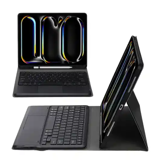 - Estuche Smart Case Magnético de Cuero Sintético con Espacio para Lápiz - Protege la Parte de adelante y trasera del iPad de daños del uso cotidiano. - Diseño Moderno Ultra Delgado, liviano y fácil de usar. - Diseño ligero elaborado en cuero sintético y materiales de primera calidad. - Espacios precisos para botones y mantienen todas las funciones sin interrupciones y de acceso rápido sin afectar su manipulación. - Protege tu pantalla de daños del uso cotidiano. - Vidrio biselado totalmente transparente. TECLADO - COMPATIBLE CON DISPOSITIVOS IOS / WINDOWS / ANDROID - Recargable - Dos horas de duración de la batería - Tiempo de uso continuo: 10 horas - Escritura rápida y silencio al pulsar las teclas