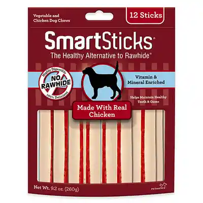 Palillos hechos con pollo real y camote zanahoria y arveja con un sabor delicioso que los perros no pueden resistir. Fácil de digerir. Con vitaminas y minerales enriquecidos. Masticar ayuda a mantener los dientes sanos. Presentación X 12 unidades. Packing: Bolsa