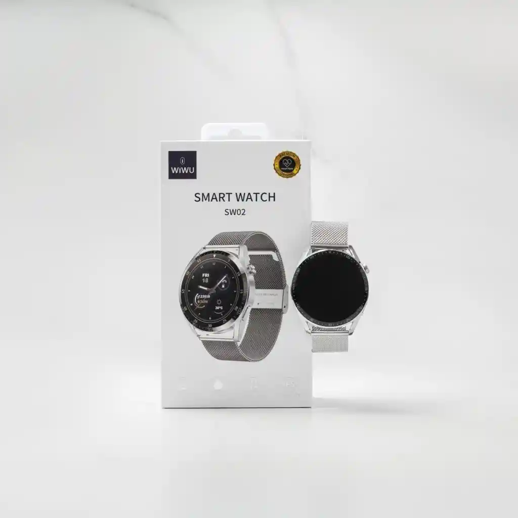 Smartwatch WiWU SW02 con diseño moderno y pantalla HD táctil de 1.39”, ideal para monitorear tu actividad diaria y mantenerte conectado. Incluye funciones de salud, deporte y notificaciones inteligentes para un uso práctico y completo en el día a día. Especificaciones: Pantalla: 1.45* IPS, 412*412 Full round display Conectividad: Bluetooth 5.0 Resistencia: IP68 (polvo) Batería: 285 mAh Autonomía: 8–10 días de uso Carga: Magnética / inalámbrica Funciones: Monitor de ritmo cardíaco Seguimiento de sueño Conteo de pasos y actividad Modos deportivos múltiples Notificaciones de llamadas y mensajes.