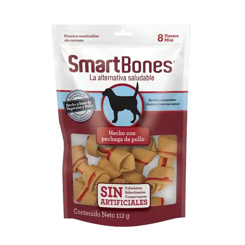 "Almidón de maíz, carne de pollo, sorbitol, glicerina, chícharos/alverjas deshidratados, gelatina de cerdo, fructosa, maltodextrinas, jarabe de malta, suero de leche bovino fermentado, sal, carragenina, zanahoria deshidratada, camote deshidratado, fosfato di cálcico, pirofosfato de sodio, tripolifosfáto de sodio, vitamina E, pantotenato di cálcico, hidrocloruro de tiamina, sulfato férrico, hidrocloruro de piridoxina, niacinamida, color rojo carmín natural, sulfato de manganeso, sulfato de Zinc, vitamina B12, riboflavina."
