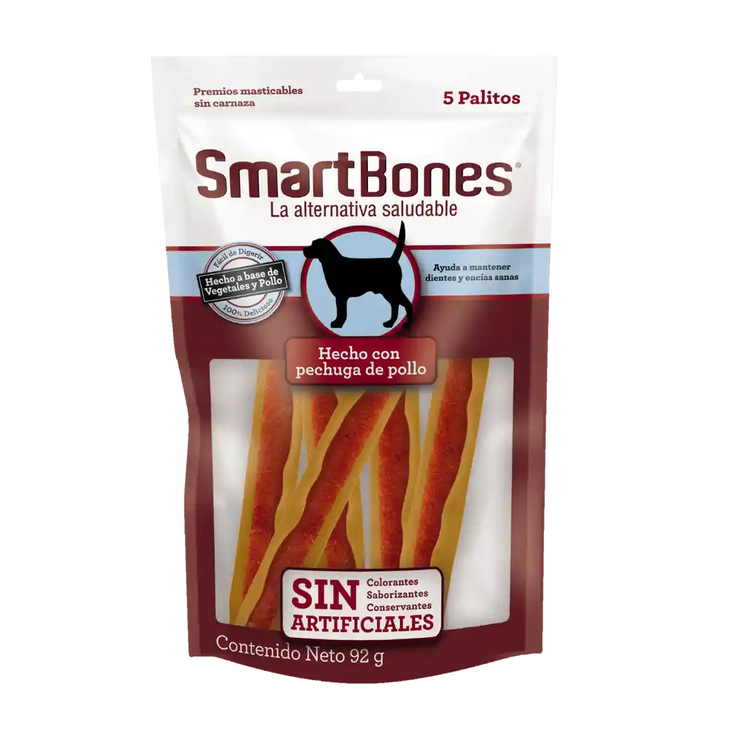 ¡Darle a su perro un regalo que ambos pueden amar es mucho más fácil! SmartBones es hecho a base de pollo y vegetales que combinan sabor y diversión en forma de palito. Son masticables que no contienen carnaza por lo que ayudará a tu mascota a mantener dientes y encías saludables. Enriquecido con vitaminas y minerales, sin colorantes ni saborizantes artificiales. Recomendado para todas las razas.