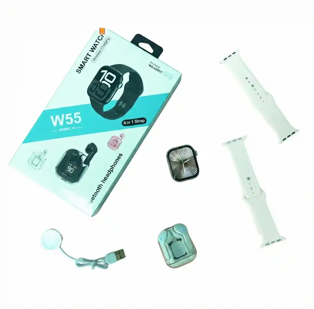 El Smartwatch W55 Super Set es la combinación perfecta entre tecnología, comodidad y estilo. Este innovador dispositivo 2 en 1 integra un reloj inteligente y auriculares Bluetooth inalámbricos dentro del mismo estuche de carga, ofreciéndote una experiencia completa en un solo producto. Ideal para entrenar, trabajar, viajar y mantenerte conectado durante todo el día. Su amplia pantalla táctil IPS HD de 1.75” brinda una visualización nítida y moderna, mientras que su conectividad Bluetooth 5.0 de doble canal asegura una sincronización rápida y estable tanto para el reloj como para los auriculares. Compatible con Android y iOS, se adapta fácilmente a cualquier estilo de vida.