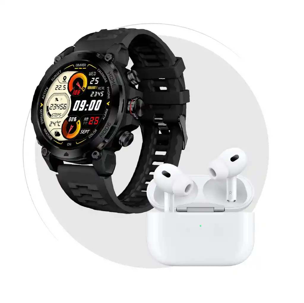 ¿Buscas el equilibrio perfecto entre resistencia táctica y tecnología de vanguardia? El Combo Explorer de Innovo+ está diseñado para quienes no se detienen. Un reloj ultra resistente que lo aguanta todo y unos audífonos con sonido de alta fidelidad para acompañar cada uno de tus desafíos. ¿Qué incluye este Combo Elite? 1. Smartwatch AuraFit Explorer: Tu Entrenador en la Muñeca Pantalla AMOLED de 1.43″: Colores vibrantes y negros profundos visibles incluso bajo el sol más intenso. Resistencia Total (IP68): No te preocupes por el sudor, la lluvia o las salpicaduras. Diseñado para durar. Inteligencia Artificial Integrada: Interactúa con ChatGPT y usa comandos de voz para controlar tu día. +100 Modos Deportivos: Desde running hasta rutinas exigentes, monitorea cada caloría y paso con precisión profesional. Salud y Conectividad: Realiza llamadas desde tu reloj y mantén bajo control tu ritmo cardíaco y oxígeno. 2. Audífonos Pro (2da Gen): Inmersión Total Cancelación Activa de Ruido: Olvídate del mundo exterior y concéntrate en tu música o podcasts favoritos. Llamadas Nítidas: Gracias al aislamiento de voz, te escucharán perfecto incluso en ambientes ruidosos. Carga Inteligente: Estuche compacto con puerto USB-C para que nunca te quedes sin energía. Ajuste Ergonómico: Se mantienen en su lugar sin importar qué tan intensa sea tu rutina de fitness.
