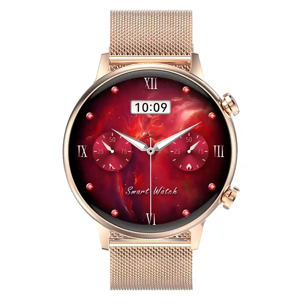 El Smartwatch G-Tide Romance es la combinación perfecta entre elegancia y tecnología para quienes buscan un accesorio sofisticado sin renunciar a funciones inteligentes. Su diseño redondo con acabado premium y correa metálica tipo malla lo convierte en un reloj ideal para ocasiones formales, casuales y el uso diario. Su pantalla AMOLED ofrece colores intensos y excelente definición, elevando la experiencia visual en cada interacción. Especificaciones Modelo G-Tide Romance, pantalla AMOLED de 1.19 pulgadas con resolución 390 x 390 píxeles, pantalla táctil completa, diseño redondo elegante con acabado premium, versión inalámbrica Bluetooth 5.2 + 3.0, batería de 260 mAh, resistencia IP68 no sumergible, grosor de 1.24 cm, funciones de llamadas, oxígeno en sangre, frecuencia cardíaca, notificaciones, control de música, cámara remota, alarma, cronómetro, temporizador, búsqueda de teléfono, recordatorio de sedentarismo y consumo de agua, múltiples modos deportivos como correr, caminar, senderismo, ciclismo, natación, yoga y más, peso aproximado del reloj 0.045 kg, dimensiones del reloj 4.1 cm alto, 4.1 cm ancho, 1.24 cm largo, dimensiones de la caja 9 cm alto, 7 cm ancho, 11 cm largo, peso aproximado con caja 0.28 kg. Incluye Reloj inteligente G-Tide Romance, cargador magnético, tres pulsos intercambiables, manilla de obsequio, manual de usuario. Garantía Garantía de 6 meses por defectos de fábrica. Retracto Política de Retracto 5 días hábiles desde la recepción del producto, siempre que esté completo y sin uso. Nota importante Si el producto llega golpeado o con piezas faltantes, repórtalo en las primeras 24 horas a la transportadora. Para aplicar la garantía, envía fotos y videos donde se evidencie el defecto.