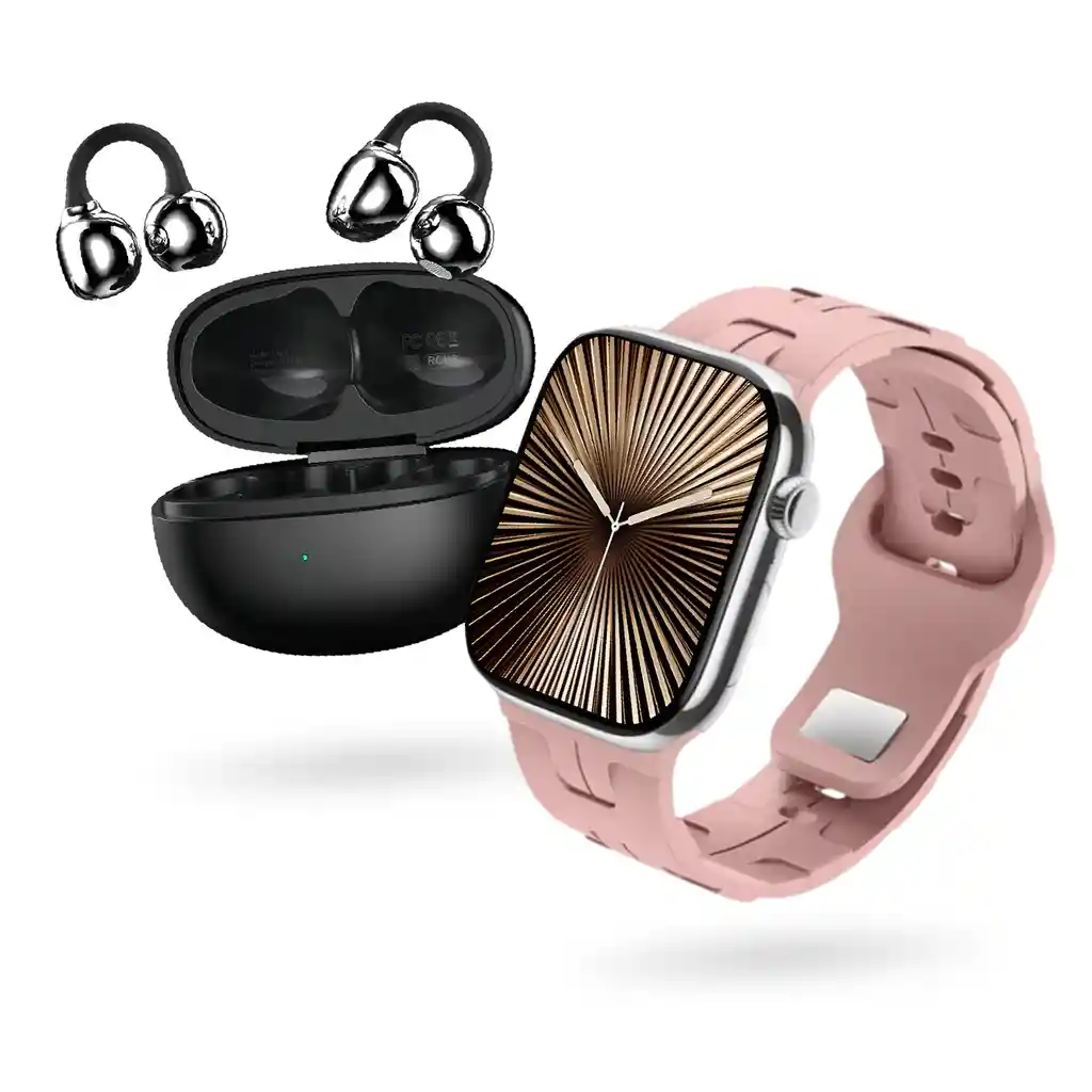 Esta estructura está diseñada para llevar al cliente desde el deseo hasta la compra. ¡Lleva tu Rendimiento al Siguiente Nivel con el Combo Pro Innovo+! ¿Buscas el equilibrio perfecto entre tecnología avanzada, estilo y resistencia? El Combo Deportivo Innovo+ une el potente Smartwatch H10 Pro Mini con los revolucionarios Audífonos Clip 1, diseñados para quienes no se detienen. ¿Por qué este combo es para ti? Smartwatch H10 Pro Mini: Inteligencia en tu muñeca No es solo un reloj, es tu asistente personal. Pantalla AMOLED de 1.75″: Colores vibrantes y negros profundos con una nitidez superior, incluso bajo el sol. Conexión con ChatGPT: Consulta información y resuelve dudas al instante gracias a su integración con IA. Salud y Deporte: Sensor de movimiento inteligente (la pantalla se enciende al girar la muñeca) y monitoreo para tus rutinas exigentes. Resistencia Total: Certificación IP67 (Waterproof), ideal para sudor o lluvia ligera. Batería de larga duración: 300 mAh para que te acompañe durante todo el día sin preocupaciones. Audífonos Clip 1: Libertad y Sonido Superior Olvídate de los audífonos que se caen o lastiman. Diseño Ergonómico de Clip: Se ajustan cómodamente a tu oreja sin introducirse en el canal auditivo, permitiéndote estar atento a tu entorno mientras entrenas. Sonido Estéreo de Alta Fidelidad: Disfruta de tu música con claridad y bajos potentes. Control Táctil: Cambia canciones o contesta llamadas con un solo toque. Bluetooth 5.0: Conexión estable y sin retrasos hasta a 10 metros.