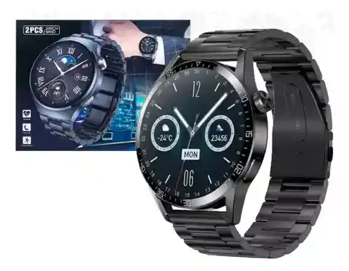 Descubre el Futuro en tu Muñeca: Smartwatch Redondo con GPS Características: Con un diseño elegante y funcional, este smartwatch redondo combina tecnología avanzada en seguimiento de actividad y GPS. Controla tus entrenamientos, ritmo cardíaco en tiempo real, y explora rutas con su GPS integrado. Ideal para correr, caminar o deportes al aire libre, este reloj inteligente es el compañero perfecto para tus metas de salud y fitness. Versión: Sport Pantalla táctil: 1.43" Aplicaciones: Descargables Carga rápida: Duración promedio de 7 horas Conectividad: Bluetooth Memoria interna: 128MB Sensores: Acelerómetro Batería: Duración de 3 días (promedio) Dimensiones y Peso: Empaque: 18,5 x 14,5 x 3 cm Pantalla: 4,5 cm de diámetro Peso: 252 gramos Funciones Principales: Llamadas: Realiza, responde y rechaza llamadas, registra y almacena contactos, notificaciones. Música: Reproduce y controla la música. Salud: Monitorea ritmo cardíaco, presión arterial, oxígeno, pasos, calorías, tiempo de ejercicio, sedentarismo, sueño, y más. Deportes: 100 modos deportivos. Herramientas: Clima, temporizador, calculadora, cronómetro, alarma, obturador móvil, localizador móvil, GPS. Contenido del Paquete: 1 Smartwatch, 1 pulso metálico, 1 pulso de silicona, 1 cargador inalámbrico.