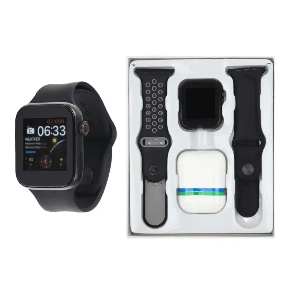 1.SMARTWATCH Y AUDÍFONOS TWS EN UN SOLO SET Disfruta de un combo perfecto que combina un reloj inteligente con múltiples funciones y audífonos inalámbricos para conectividad total. 2.MONITOREO AVANZADO DE SALUD Mide tu frecuencia cardíaca, presión arterial y oxígeno en sangre en tiempo real, además de contar con 8 modos deportivos para optimizar tu rendimiento. 3.CONECTIVIDAD BLUETOOTH 5.0 ESTABLE Y RÁPIDA Recibe notificaciones, controla tu música y sincroniza tus datos fácilmente con dispositivos iOS y Android sin interrupciones. 4.DISEÑO MODERNO Y PANTALLA VIBRANTE Pantalla TFT de 1.75” con colores nítidos, interfaz intuitiva y una correa de silicona cómoda para un uso prolongado. 5.BATERÍA DURADERA Y CARGA MAGNÉTICA Batería de 200mAh con carga magnética rápida para que disfrutes de todas sus funciones sin preocuparte por recargarlo constantemente.