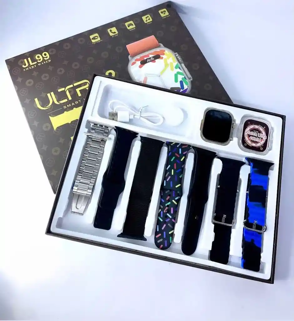 Este paquete exclusivo incluye todo lo que necesitas para estar siempre conectado, con estilo y comodidad. Este Megacombo te ofrece smartWatches de la serie Ultra 2 con pantalla completa. Con su tecnología de última generación, podrás disfrutar de todas las funciones avanzadas que necesitas para gestionar tu día a día, desde notificaciones en tiempo real hasta seguimiento de actividad física y salud. Imagina tener la última tecnología de SmartWatches en tu muñeca, combinada con una experiencia auditiva de primer nivel. Además, las 7 pulseras exclusivas te permitirán personalizar tu estilo cada día. 1. Pantalla: pantalla grande HD de 2,3 pulgadas 2. Batería: polímero de alta capacidad 320MAH 3. Método de carga: Cargadores inalámbricos 4. Aplicación: HiWatch Ultra 5. Funciones: Canculadora / Dialer / Libro de teléfono / Frecuencia cardíaca / Presión arterial / Oxígeno en sangre / Tricíclico de salud / ECG / Modo deportivo múltiple / monitor de sueño / Música / Cámara remota / Recordatorio / Qué Aplicación, tortado, notificaciones de mensajes de facebook / Notificador remoto / Clima / Cronómetro / Encuentra teléfono, etc. Especificaciones de los auriculares 1. Versión de Bluetooth: V5.3+EDR 2. Funciones: Función táctil 3. Tiempo de espera: alrededor de una semana / / / Reproducción de música: alrededor de 3-4 horas Tamaño del empaque: 31 cm largo x 21 cm ancho x 3 cm alto Peso total del artículo: 502 gramos Contenido del paquete: Reloj inteligente (Ultra 2) reloj 7 correas de reloj Cargador inalámbrico (reloj) Cargador USBC (audifonos)