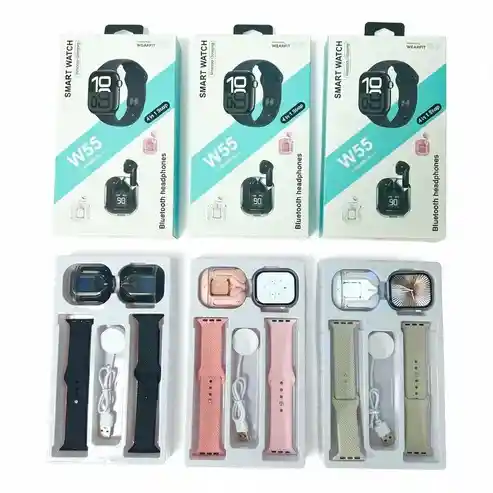 El Smartwatch W55 Super Set es la combinación perfecta entre tecnología, comodidad y estilo. Este innovador dispositivo 2 en 1 integra un reloj inteligente y auriculares Bluetooth inalámbricos dentro del mismo estuche de carga, ofreciéndote una experiencia completa en un solo producto. Ideal para entrenar, trabajar, viajar y mantenerte conectado durante todo el día. Su amplia pantalla táctil IPS HD de 1.75” brinda una visualización nítida y moderna, mientras que su conectividad Bluetooth 5.0 de doble canal asegura una sincronización rápida y estable tanto para el reloj como para los auriculares. Compatible con Android y iOS, se adapta fácilmente a cualquier estilo de vida.