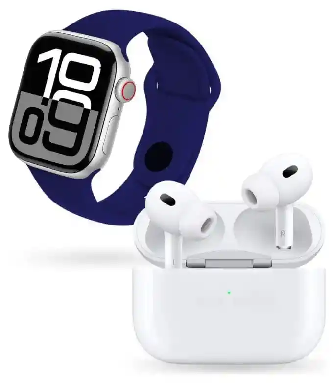 ¡Lleva tu rendimiento y estilo al siguiente nivel con el Combo Definitivo ¿Buscas el equilibrio perfecto entre tecnología, deporte y elegancia? El Combo ACE-20 ha sido diseñado para quienes no se detienen. Unimos la potencia del Smartwatch Watch 10 con la pureza de sonido de los AirPods de 2da generación para ofrecerte una experiencia 360°. ¿Por qué este combo es para ti? 1. Smartwatch Watch 10: Tu centro de control en la muñeca Pantalla Ultra Amplia de 2.02": Visualiza tus notificaciones, apps y estadísticas con una claridad asombrosa. Rastreo Fit Completo: Monitorea tu ritmo cardíaco, conteo de pasos y progreso en múltiples modos deportivos. Conectividad Total: Realiza y recibe llamadas directamente desde el reloj y controla la cámara de tu celular (disparador remoto). Diseño Robusto y Elegante: Caja de 4.5 cm con una correa deportiva de ajuste cómodo y seguro. 2. AirPods 2da Gen (Edición Especial): Sonido que te envuelve Cancelación Activa de Ruido: Bloquea el mundo exterior y concéntrate en tu música o podcasts favoritos.