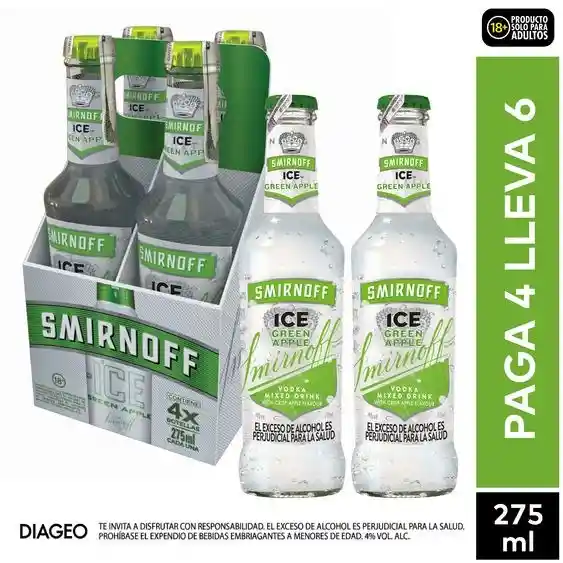 SMIRNOFF ICE APPLE GREEN *275 ML *6 SXP