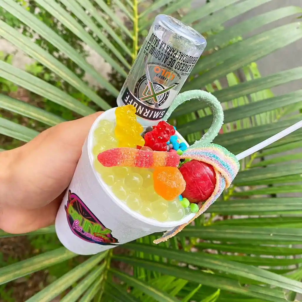 Granizado A Base De Vodka Con Sabor A Limonada, Acompañado De Toppings (Gomas Y Burbujas). . .